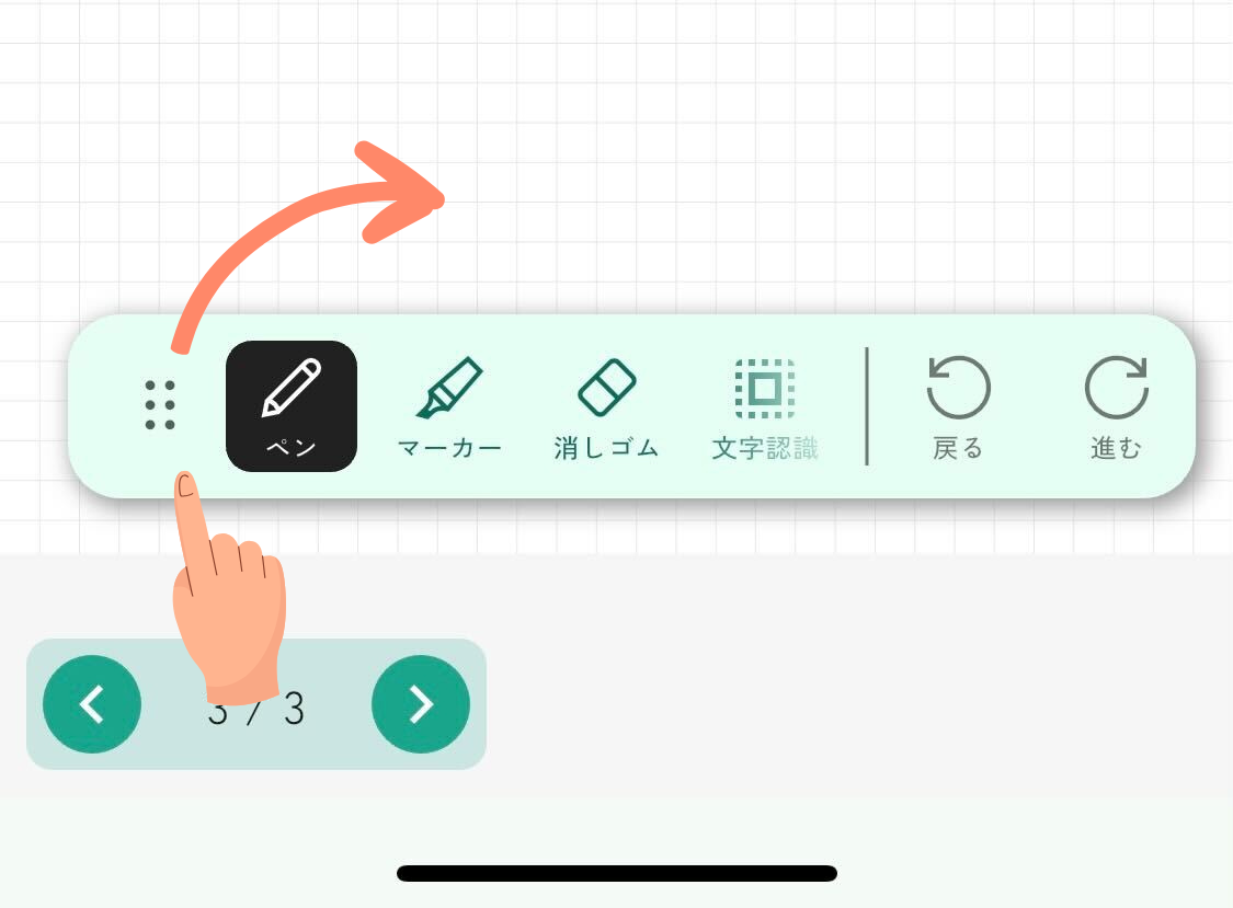 ノート上でスタイラスペンを検知すると、ペン・マーカー・消しゴムはスタイラスペンでのみ使用できるようになります。